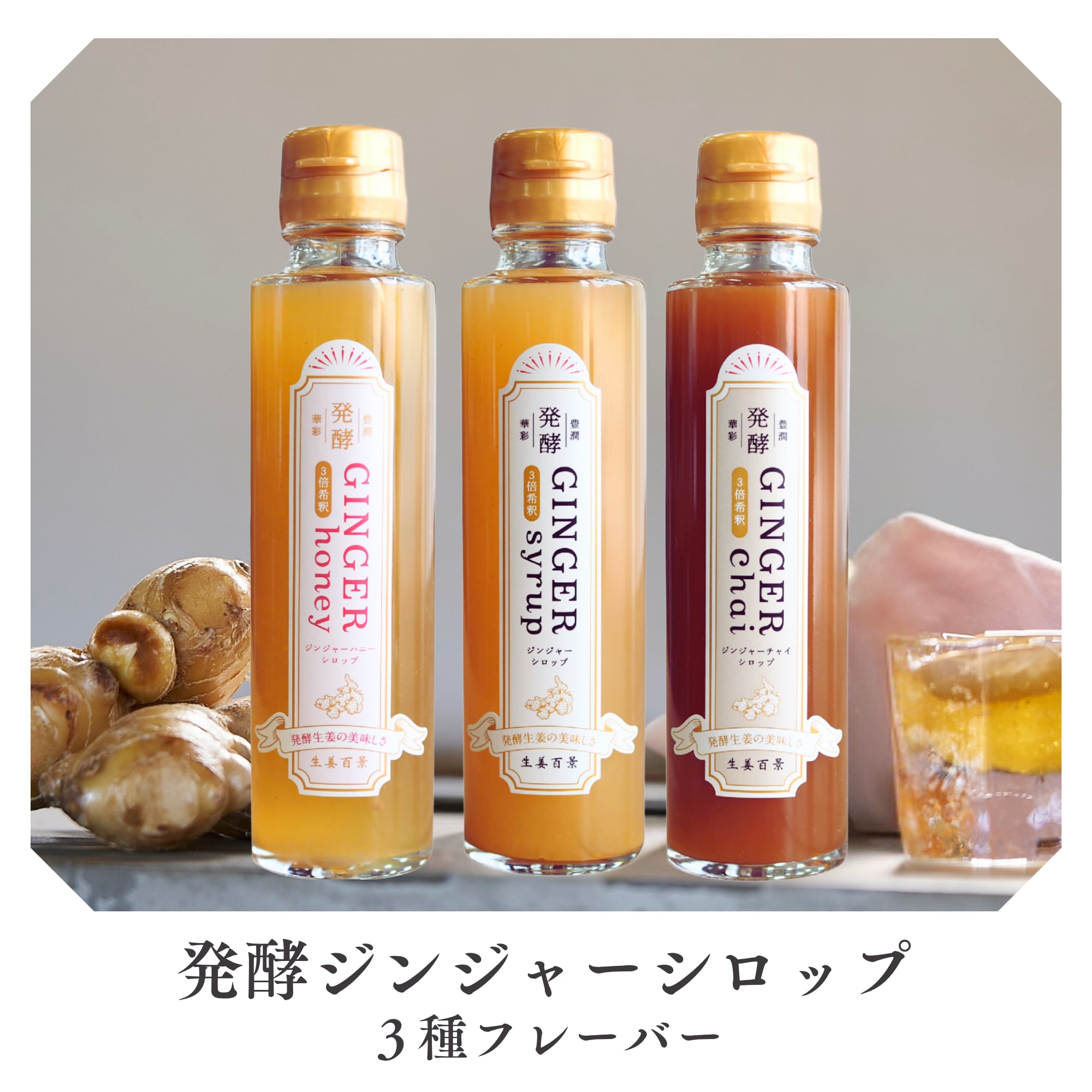 3種類の発酵ジンジャーシロップからお選びください。